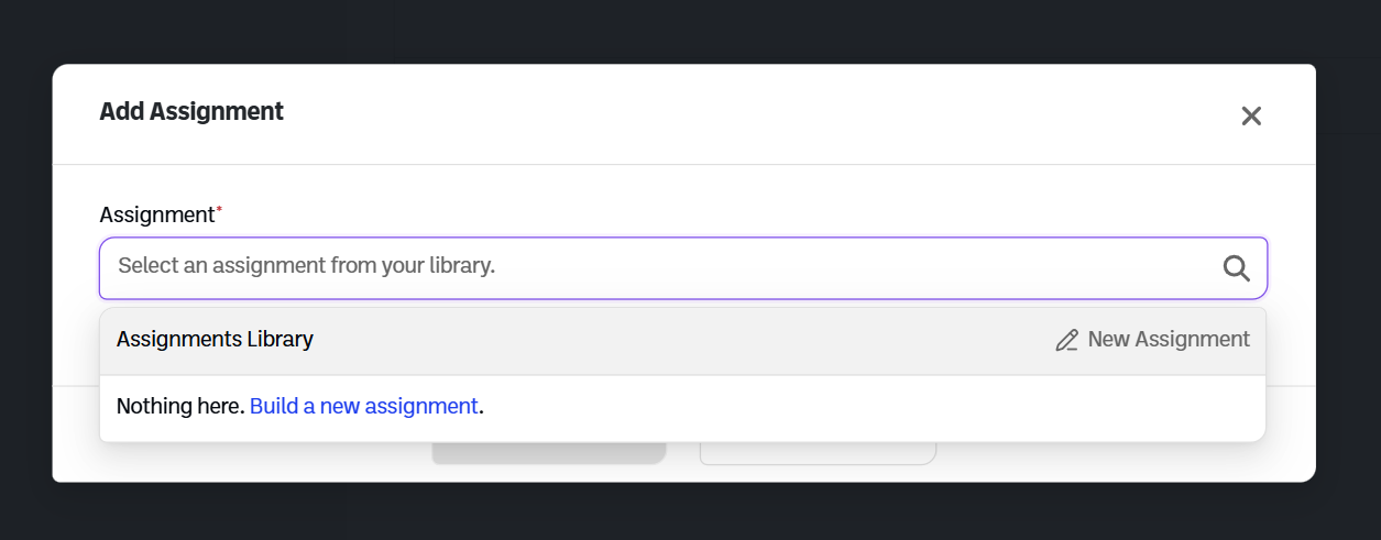 3. If you have no assignments yet, you will have the option to build a new assignment