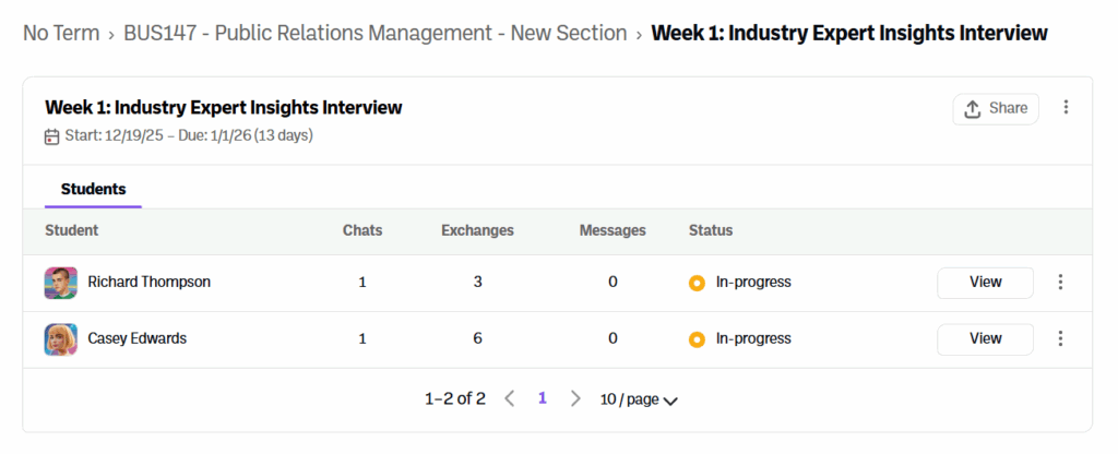 7. From there you will be able to see all of the students’ real time engagements.