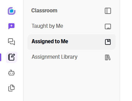 5. Students who have been enrolled in a course will also be able to see the assignment under their enrolled classes by clicking on Classroom in the side navigation bar, then selecting to “Assigned to Me.”