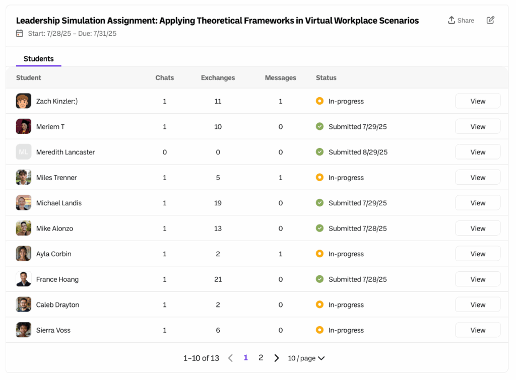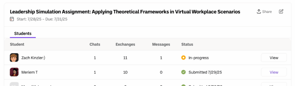 As students begin engaging with your assignment you will be able to review their work both at an in progress state as well as submitted state.