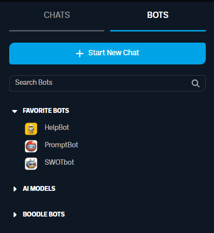 Bot Categories: Browse through bot categories and hover over any bot to view its functionalities