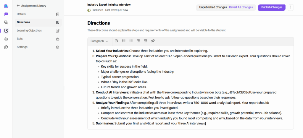 5. Click on “Learning Objectives” to add your assignment learning objectives.